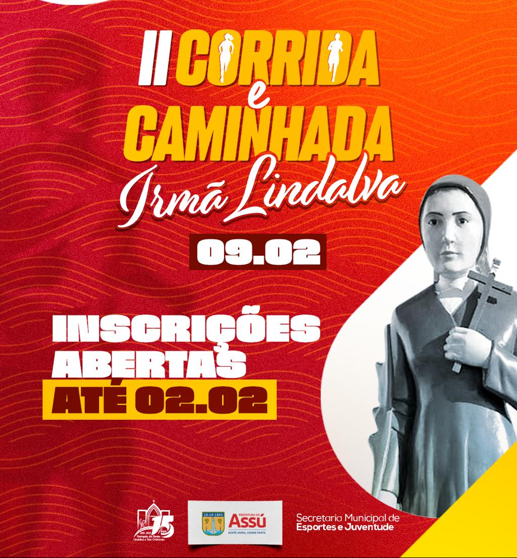 A 2ª Corrida e Caminhada Irmã Lindalva será realizada no dia 9 de fevereiro deste ano, na cidade de Assu. A prova terá 5km de percurso e oferecerá medalhas para todos os 200 atletas inscritos que concluírem o percurso.