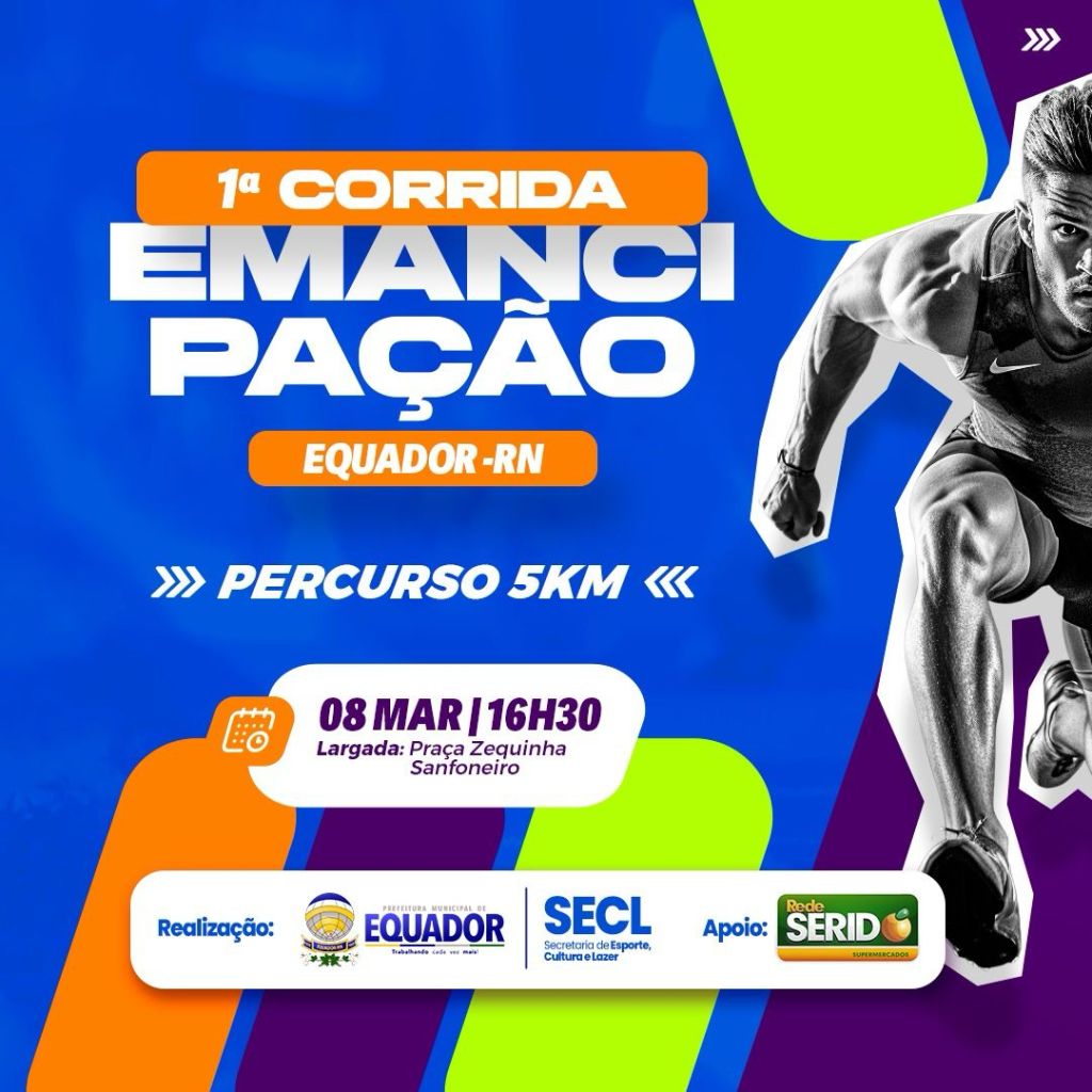 A cidade de Equador vai sediar no próximo dia 8 de março a 1ª Corrida de Emancipação Política. A prova terá concentração na praça Zequias Sanfoneiro, no Centro, às 14h, e largada às 16h30.