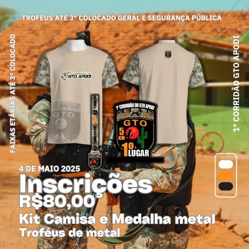 As inscrições estão abertas e custam R$ 80, podendo ser realizadas por meio do site https://cronosport.com.br/evento/2025/corrida-de-rua/1corrido-do-gto-de-apodi