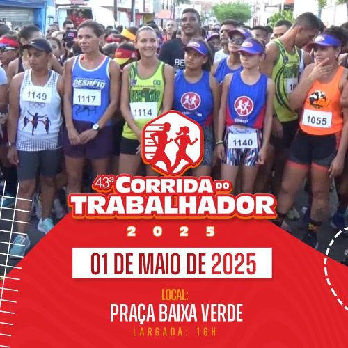 A 43ª Corrida do Trabalhador, organizada pela Associação Atlética Baixaverdense Ponte Preta e Baixa Verde Eventos, será realizada em João Câmara no dia 1º de maio. O evento tem como finalidade comemorar o Dia do Trabalhador, promover a integração dos atletas e incentivar a prática desportiva. A corrida terá um percurso de 8km, com largada da Prefeitura Municipal de João Câmara e chegada na Câmara Municipal, às 16h.