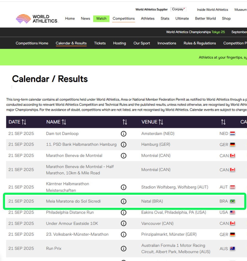 A Meia do Sol alcançou mais um marco histórico neste ano. Após conquistar o Selo Ouro da Confederação Brasileira de Atletismo (CBAt), a prova foi incluída no calendário oficial da World Athletics. Este feito notável destaca a Meia do Sol como a primeira prova de 21k do Rio Grande do Norte a atingir esse nível de reconhecimento internacional, elevando o evento a um patamar global.